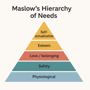 One of the familiar but still powerful frameworks we revisited was Maslow’s hierarchy of needs. While often simplified as a pyramid of human needs (physiological → safety → belonging → esteem → self-actualization), Maslow’s model remains relevant for leadership because it reminds us that motivation is layered.